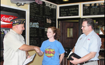 A Blue Star Certificate of Honor was presented to Craig and Deeanna Dowdle Cardell, whose son Specialist Colby Cardell, is in the Army, serving in Afghanistan. Photo left to right, Pike Post 197 Commander Don Bailey, Deanna Cardell, and Pike Post 197 Chaplain Ben Maxedon.