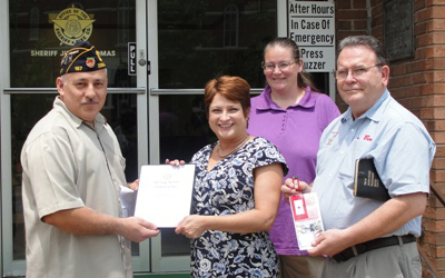 A Blue Star Certificate of Honor was presented to Jimmie and Tracy Vincent, whose son Sergeant James Lucas Vincent, is in the Marines, based at Camp Lejune NC. Photo left to right, Pike Post 197 Commander Don Bailey, Tracy Vincent, Peggy Payton-Wife of Pike Post 197 Senior Vice Billy Payton, and Pike Post 197 Chaplain Ben Maxedon.