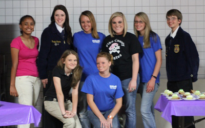 PCHS FFA and PCMS FFA member volunteers serving at the American Cancer Society’s Survivor Dinner: Back row L to R: Makia Jenkins, Danielle Cawthon, Brittany Husack, Abby Wornstaff, Shayna Hood, Dustin Blohm. Front Row L to R: Rachel Klaassen and Mary Martin. Photo courtesy of Pike County Middle School and Renee Andrews