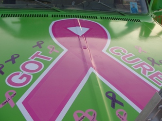Gabrielle Gresham is a 17 years old Senior at Pike County High School. She is into mud racing and is 5th in points out of 25 trucks at Thrill Hill. The hood of this truck will be sealed with a clearcoat and raced for the season before being donated to the Susan G. Komen Foundation.