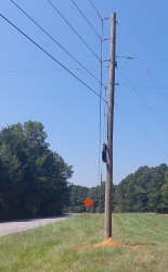 A new power pole has been installed at this location after Southern Rivers linemen worked through the night to repair the damage.